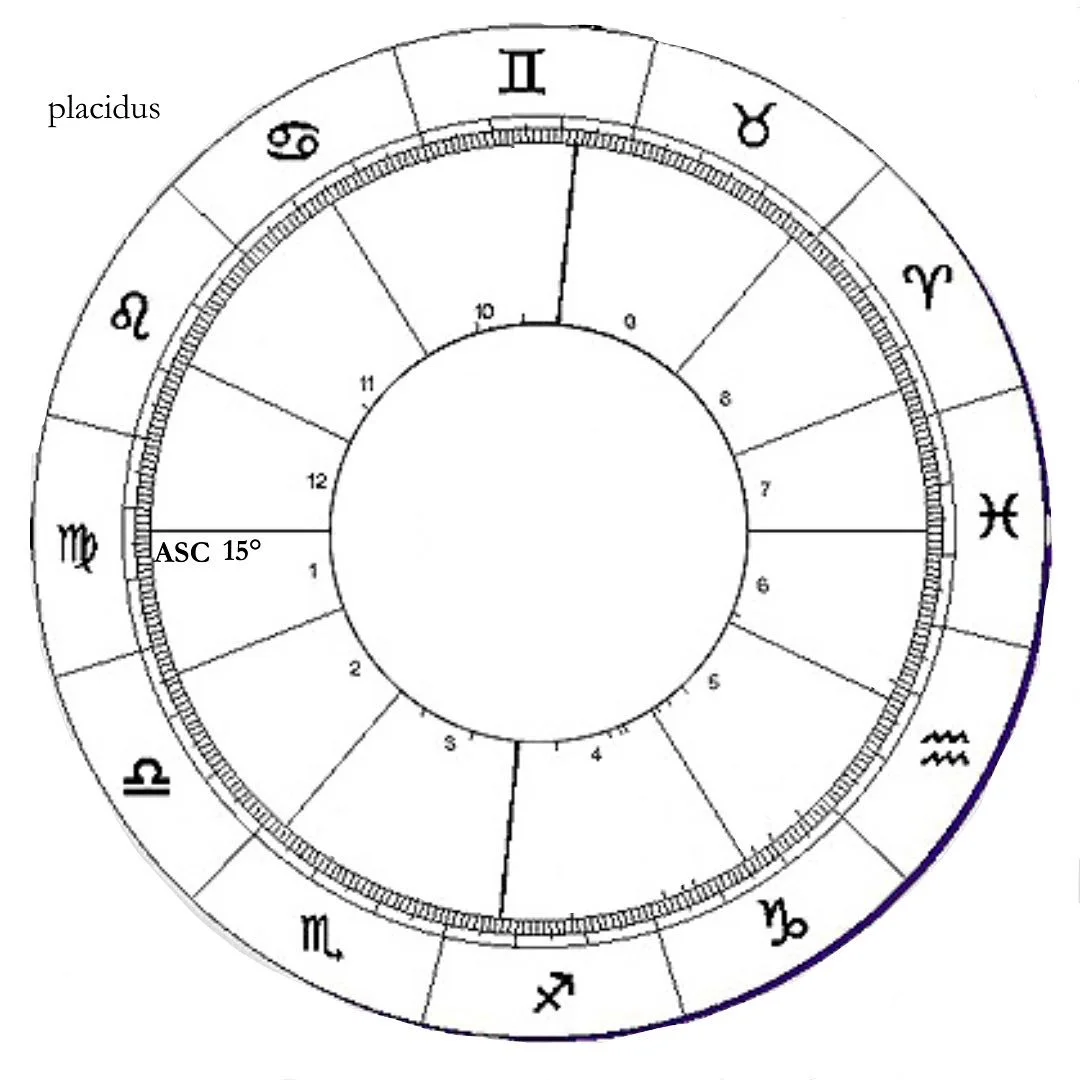By far the most popular house system in the West is a Quadrant system called Placidus, named after the 17th century CE astrologer Placidus de Titis who developed it after attempting to interpret the work of Claudius Ptolemy, ‘The Father of Western Astrology’. Today, the consensus amongst prominent astrology historians is that Placidus’s translation of Ptolemy’s text on house division was inaccurate. Though some proponents of the Placidus system believe that it was a serendipitous accident, arguing that his complex system expands on the more simplistic Whole Sign system.